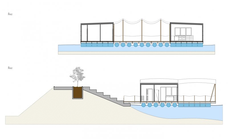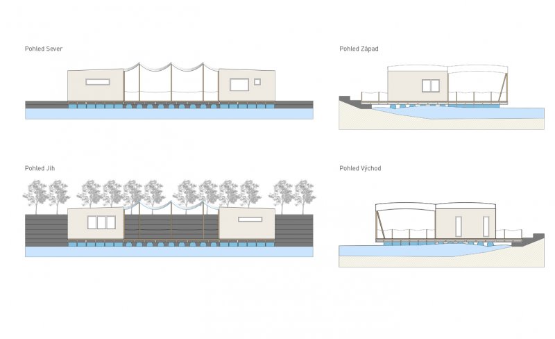 V prvním kroku by na severním břehu dolní Novomlýnské nádrže mělo vniknout pouze bistro o rozměrech 6,12 x 5,34 m, jehož cílem by bylo občerstvovat kolemjdoucí. První krok počítá s revitalizací břehu, který je kaskádovitě členěný, a tím vytváří vhodné podmínky pro posezení a odpočinek. V případě komerčního úspěchu dochází k druhé fázi vývoje, a to rozšíření bistra o pobytovou plochu o rozměrech 6,12 x 9,18 m, na kterou navazuje další objekt, který disponuje toaletami a skladem nábytku. Rozměry tohoto objektu jsou shodné s rozměry bistra. Tyto úpravy mění bistro na bar. V případě velké poptávky je možné zvětšit kapacitu baru další pobytovou plochou.